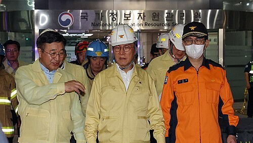 윤호중 행안부 장관은 이날 국정자원 대구센터를 방문해 서비스가 중단된 96개 시스템을 재구축할 클라우드 시설을 점검해다.
