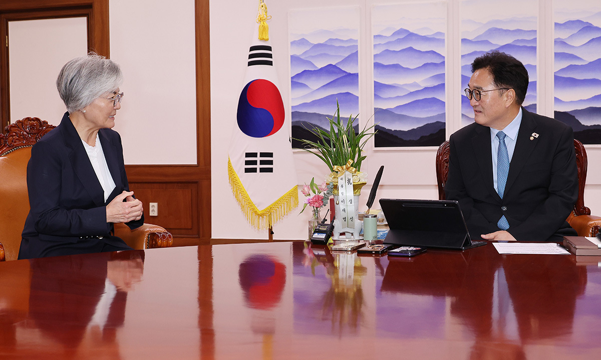 우 의장은 "한국의 평화 프로세스를 잘 만들어가야 하는 도전 국면"이라며 "대사님의 미국에서의 역할, 한반도 평화를 위한 역할 이런 것들이 정말 중요할 때인 것 같다"고 강조했다.