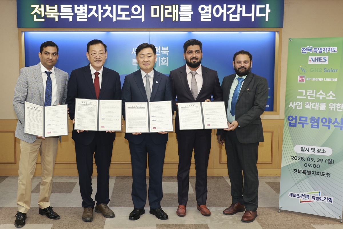 전북도는 29일 도내 수소 전문기업 ㈜아헤스와 함께 인도 GH2 Solar, KPI Green Hydrogen & Ammonia와 업무협약(MOU)을 체결했다고 밝혔다. 협약에 따라 전북도와 참여 기업들은 수전해 설비 기술 교류와 그린수소 분야 공동 사업 추진, 인도 현지 시장 확대에 상호 협력하기로 했다. 전북도는 이번 협약을 계기로 국제 공동 프로젝트와 해외 판로 개척을 적극 지원해 도내 기업의 기술 경쟁력을 높이고, 청년·연구 인력의 일자리 창출을 유도한다는 계획이다.