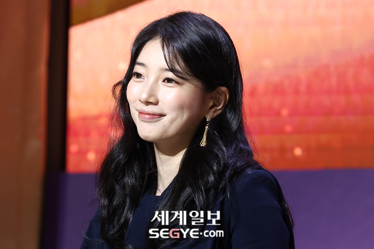 배우 수지가 29일 조선 팰리스 서울 강남에서 열린 넷플릭스 시리즈 ‘다 이루어질지니’의 제작발표회에 참석해 미소를 짓고 있다.