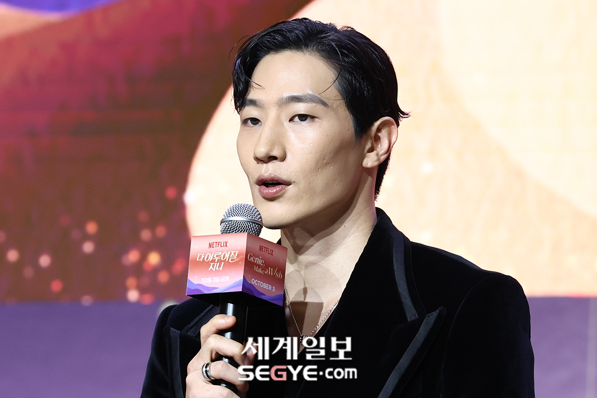 배우 노상현이 29일 조선 팰리스 서울 강남에서 열린 넷플릭스 시리즈 ‘다 이루어질지니’의 제작발표회에 참석해 인사말을 하고 있다.