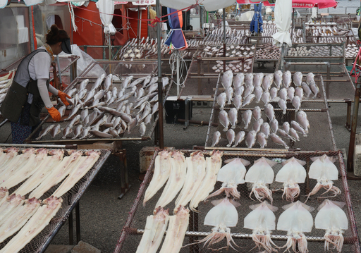 민족 대명절인 한가위를 일주일 앞둔 29일 부산 기장군 일광면 칠암마을 물양장(소형 선박이 접안하는 부두)에서 어민들이 민어, 조기, 참돔, 가자미, 오징어 등 제수용 생선을 건조하고 있다.