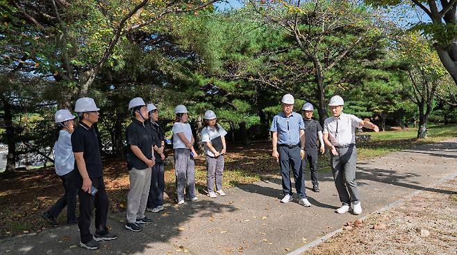 김남일 사장을 비롯한 경북문화관광공사 임직원들이 경관 개선 현장을 둘러보고 있다. 공사 제공
