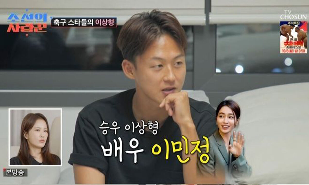 축구선수 이승우가 배우 이민정을 이상형으로 꼽았다.