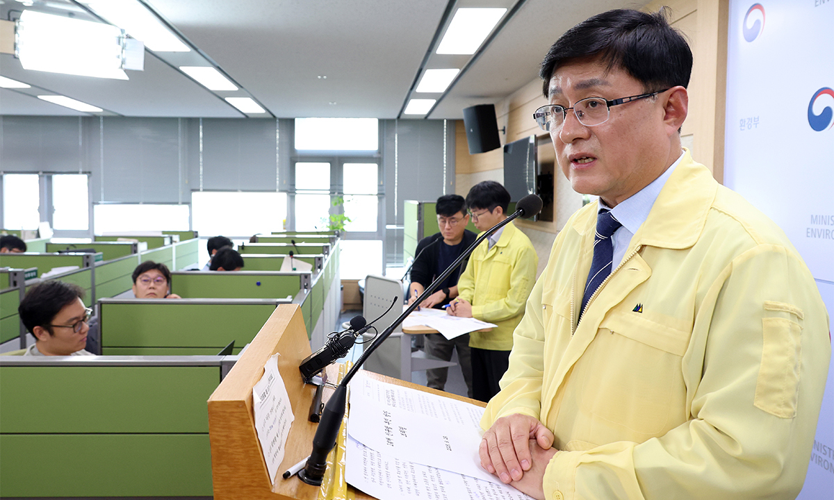 김성환 환경부 장관이 지난 29일 세종시 정부세종청사에서 윤석열 정부가 추진한 14개 신규댐 중 7개 댐은 건설 추진을 중단하고 나머지 7개 댐은 기본 구상 및 공론화를 통해 최종 결정하겠다고 밝히고 있다. 뉴시스