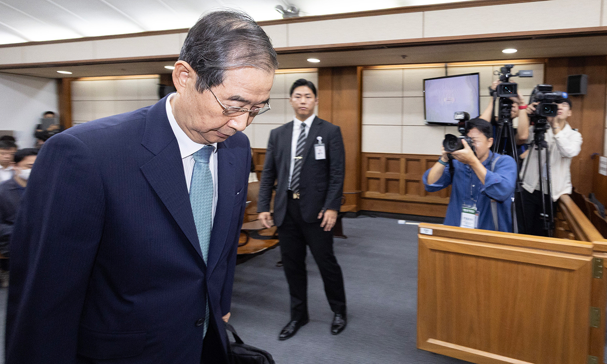 윤석열 전 대통령의 비상계엄 선포를 방조한 혐의를 받는 한덕수 전 국무총리가 30일 서울 서초동 중앙지법에서 열린 첫 재판에 출석하고 있다. 한 전 총리는 내란 방조 혐의는 부인했으나 윤 전 대통령 탄핵 심판에서 ‘계엄 선포 문건을 받은 기억이 없다’고 위증한 부분은 인정했다.