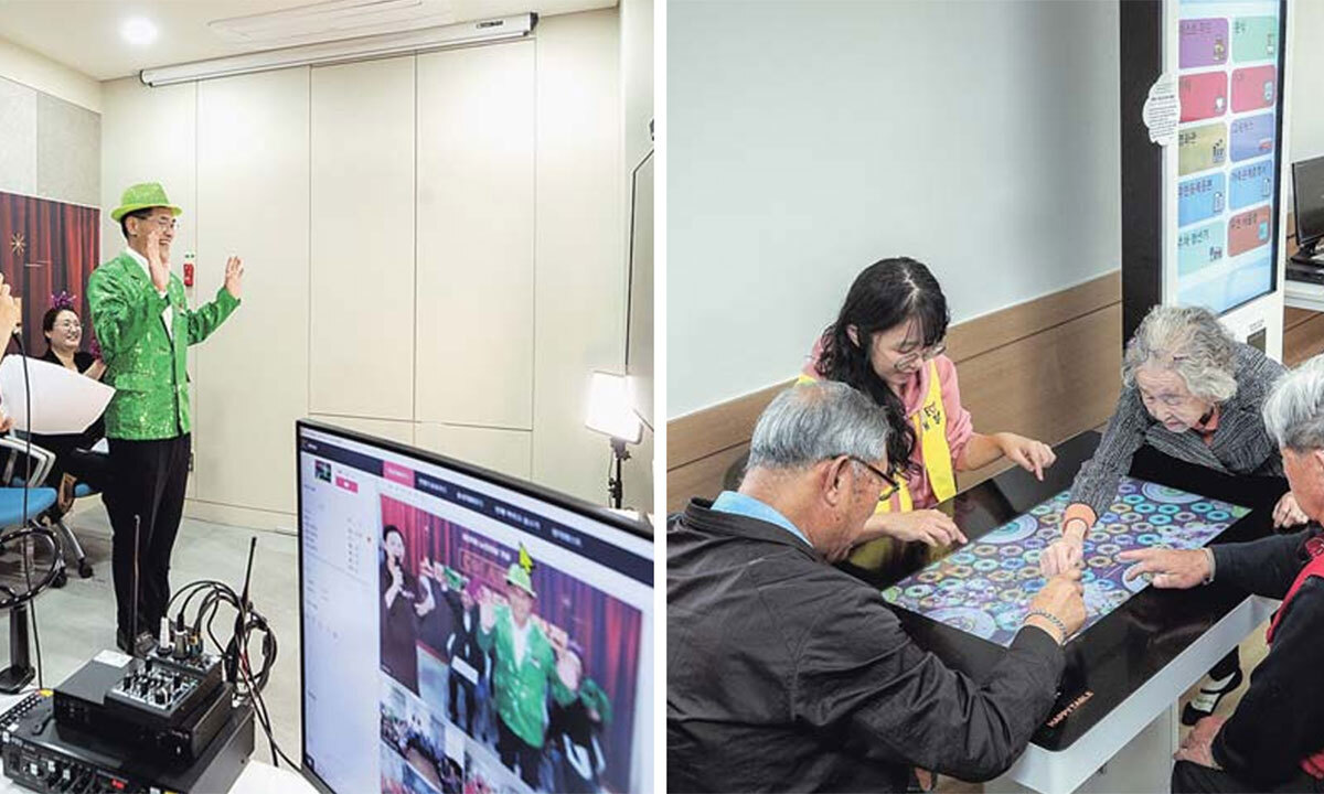 실제 스마트경로당에서는 어른신들이 다방면으로 활용할 수 있는 디지털 기기를 만날 수 있다. 25일 찾은 신원경로당에는 어르신들의 혈압과 체성분을 분석해 맞춤형 건강관리 정보를 제공하는 ‘IoT 기반 안면인식 건강관리시스템’, 노래경연 대회 등 다양한 비대면 프로그램을 제공하는 ‘화상 플랫폼’, 유명 관광지 산책 코스를 걷는 듯한 체험을 제공하는 ‘스마트워킹’이 있었다.