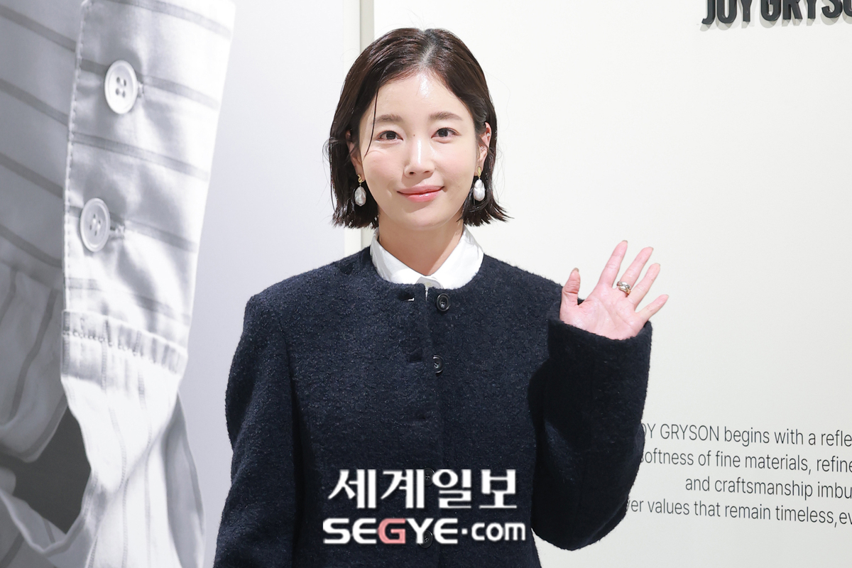 배우 기은세가 1일 서울 용산구 한남동에서 진행된 패션 브랜드 조이그라슨 한남 플래그십 스토어 오픈 행사에 참석해 포즈를 취하고 있다.