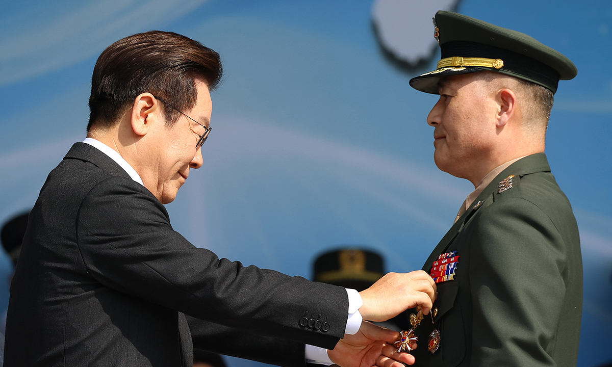 사열 후 이 대통령은 해병대 '채상병 사건' 당시 상부의 압력에 굴하지 않고 수사를 이어온 박정훈 해병대 수사단장(대령)에게 보국훈장 삼일장을 수여했다.