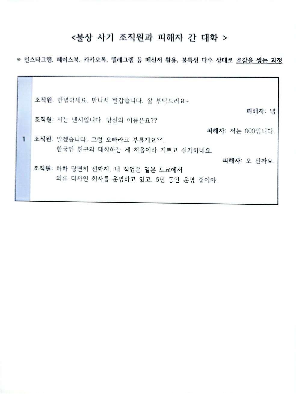 이어 “낯선 외국인이 SNS 계정으로 접근해 각종 명목으로 금품을 요구할 때 상대방의 신원이 확인되기 전까지 송금하지 말아야 한다”며 주의를 당부했다.