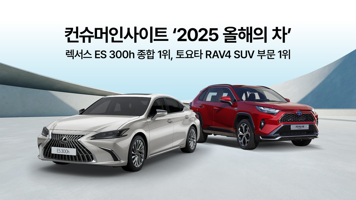 한국토요타자동차는 자동차 리서치 전문기관 컨슈머인사이트가 실시한 ‘2025 연례 자동차 기획조사’ 소비자체험평가에서 프리미엄 하이브리드 세단 렉서스 ES 300h가 ‘올해의 차’ 종합 1위, 토요타 크로스오버 SUV ‘RAV4’가 ‘SUV부문 1위’에 선정됐다고 1일 밝혔다.