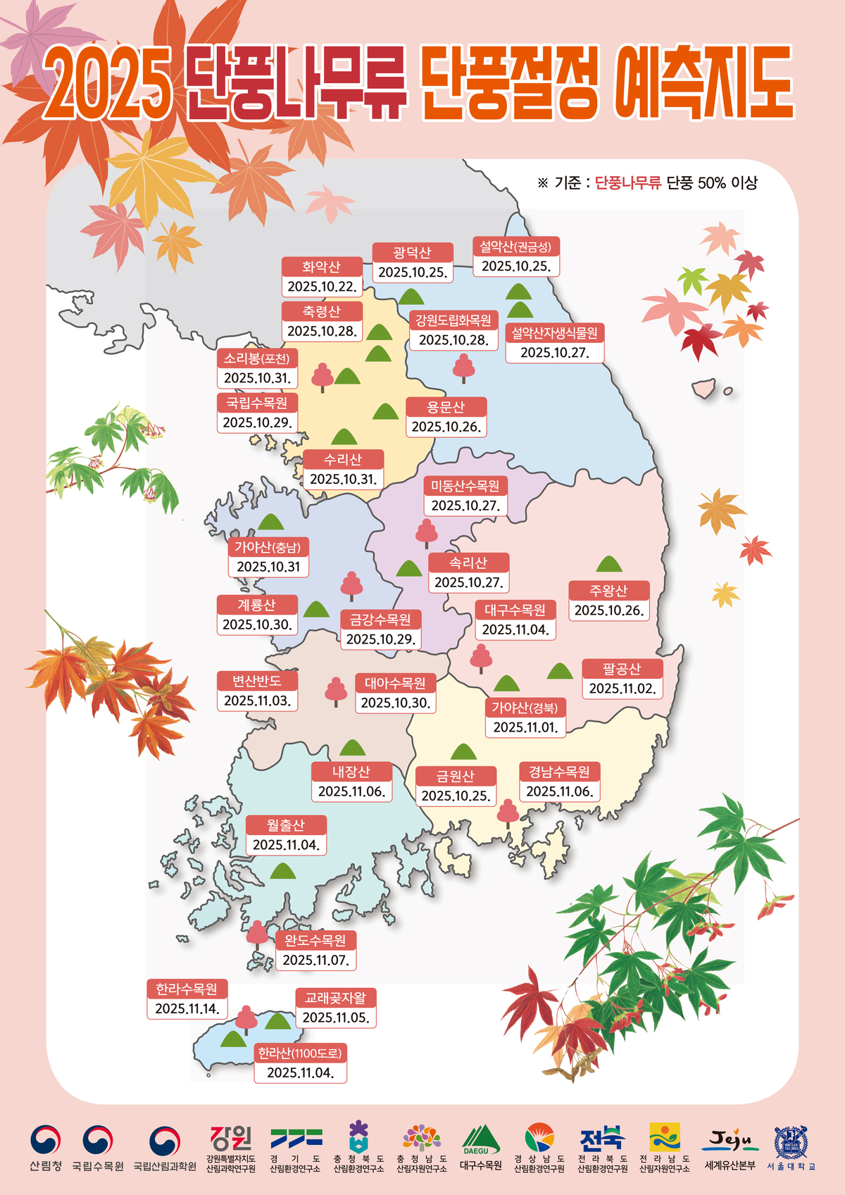 산림청은 우리나라 주요 산림의 단풍 절정 시기를 담은 ‘2025년 산림단풍 예측지도’를 1일 발표했다.