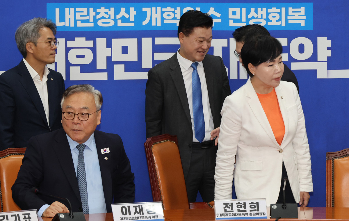 민주당 3대 특검 종합대응특위는 이날 회의를 열고 김건희 특검팀(특검 민중기) 파견 검사 전원이 정부·여당이 추진하는 검찰개혁에 반대하며 원대 복귀 요구한 것을 검찰의 집단적 항명으로 보고 대응책을 논의했다.