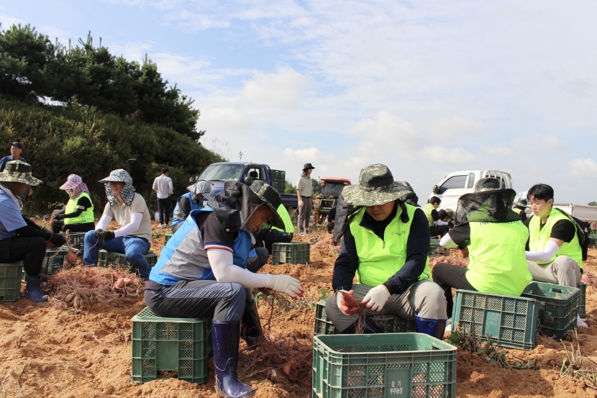 이번 활동은 고령화로 인한 농촌 인력 부족 문제를 해소하기 위해 마련되었으며, 경제지원부 및 전북본부, 익산시지부, 삼기농협 등 임직원 50여 명이 삼기농협 관내 농가를 찾아 고구마 수확 작업을 도왔다.