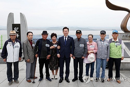 이 대통령은 이날 오전 인천 강화군 강화평화전망대에서 '실향민과의 대화' 행사를 가졌다.