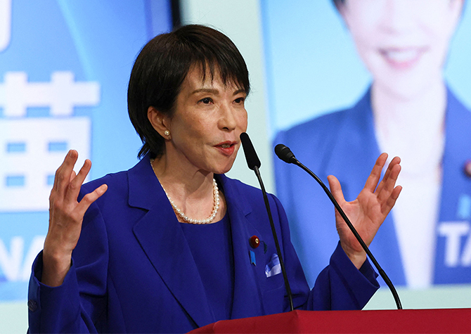그는 자민당 첫 여성 총재에 선출됐고, 오는 15일쯤 실시될 국회 총리 지명선거를 거쳐 사상 최초의 여성 일본 총리가 될 것으로 보인다.