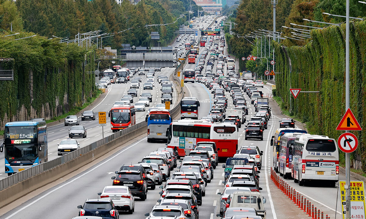 이날 오후 1시 40분 기준 경부선 부산 방향은 신갈분기점~수원신갈IC 부근 2㎞, 안성분기점~안성휴게소 부근 4㎞, 청주분기점~죽암휴게소 부근 9㎞, 회덕분기점~비룡분기점 부근 12㎞에서 느린 흐름을 보이고 있다.