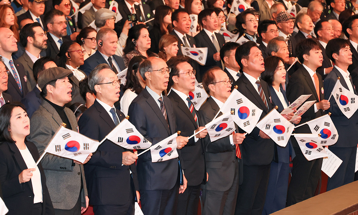 '알면 알수록, 한글'을 주제로 열린 행사에는 국가 주요 인사와 정당·종단대표, 주한 외교단, 한글 관련 단체, 각계 대표, 시민 등 1천200여명이 참석해 한글의 의미와 역사를 되새겼다.