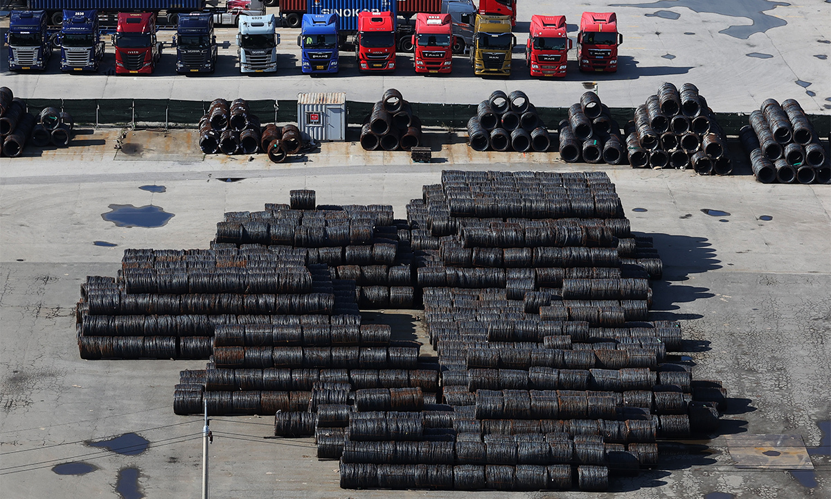 8일 경기도 평택항에 철강 제품이 쌓여있는 모습. 연합뉴스