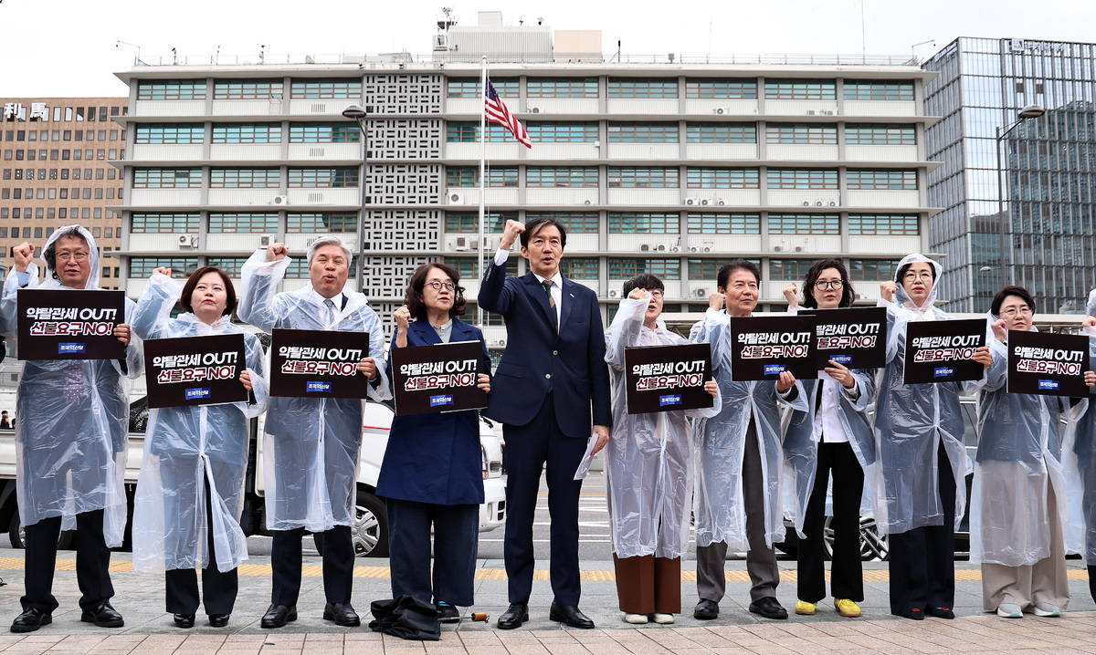 조 위원장과 서왕진 원내대표 등은 이날 종로구 주한미국대사관 앞에서 기자회견도 열어 "부당한 관세 압박을 철회하라"고 항의했다.