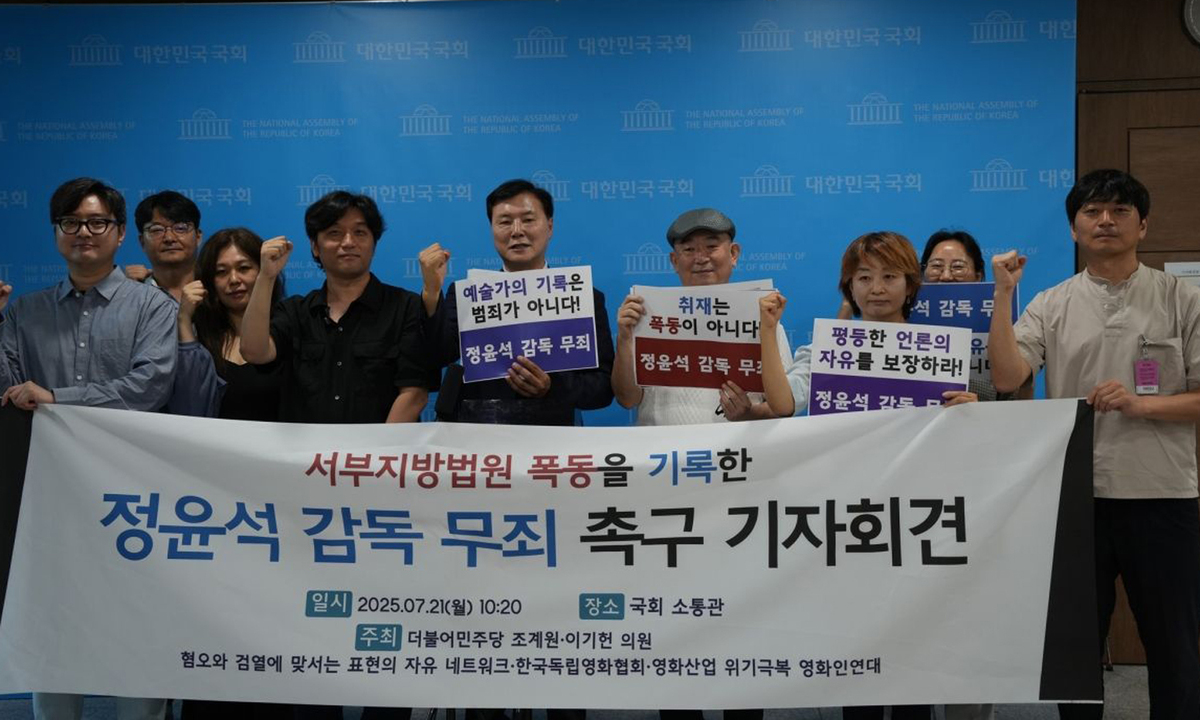 민주사회를 위한 변호사모임(민변) 공익인권변론센터는 10일 건조물침입 혐의로 벌금 200만원을 선고한 1심 판결에 항소했다고 밝혔다. 앞서 8월1일 서울서부지법 형사11부(재판장 김우현)는 정 감독의 촬영 행위가 작품 활동으로서 인정된다고 보면서도 청사 진입은 불법이라고 판단해 실형을 선고했다. 정 감독은 올해 1월19일 새벽 서부지법 후문 인근에 있던 시위대가 경찰과 법원 직원 등을 폭행하고 유리창 등을 훼손해 법원으로 난입한 사태를 촬영하다가 경내 진입 3분 만에 경찰에 체포됐다. 검찰은 정 감독을 특수건조물침입 혐의로 기소했고, 법원은 일반건조물침입 혐의를 유죄로 인정했다. 법원의 유죄 판결에 문화예술계는 “공익 목적의 취재를 범죄로 규정해 예술가의 표현의 자유와 다큐멘터리스트의 언론 자유를 침해했다”고 반발했다.