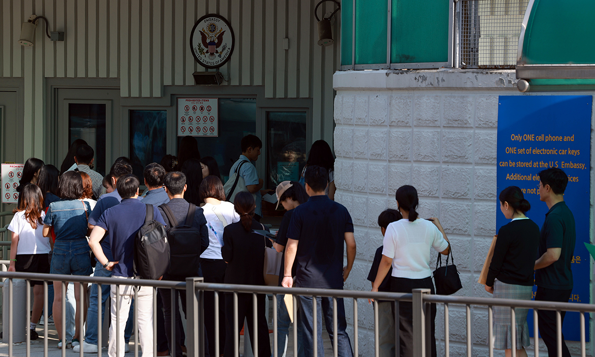 미국 비자 발급 위해 미대사관 찾은 시민들. 연합뉴스