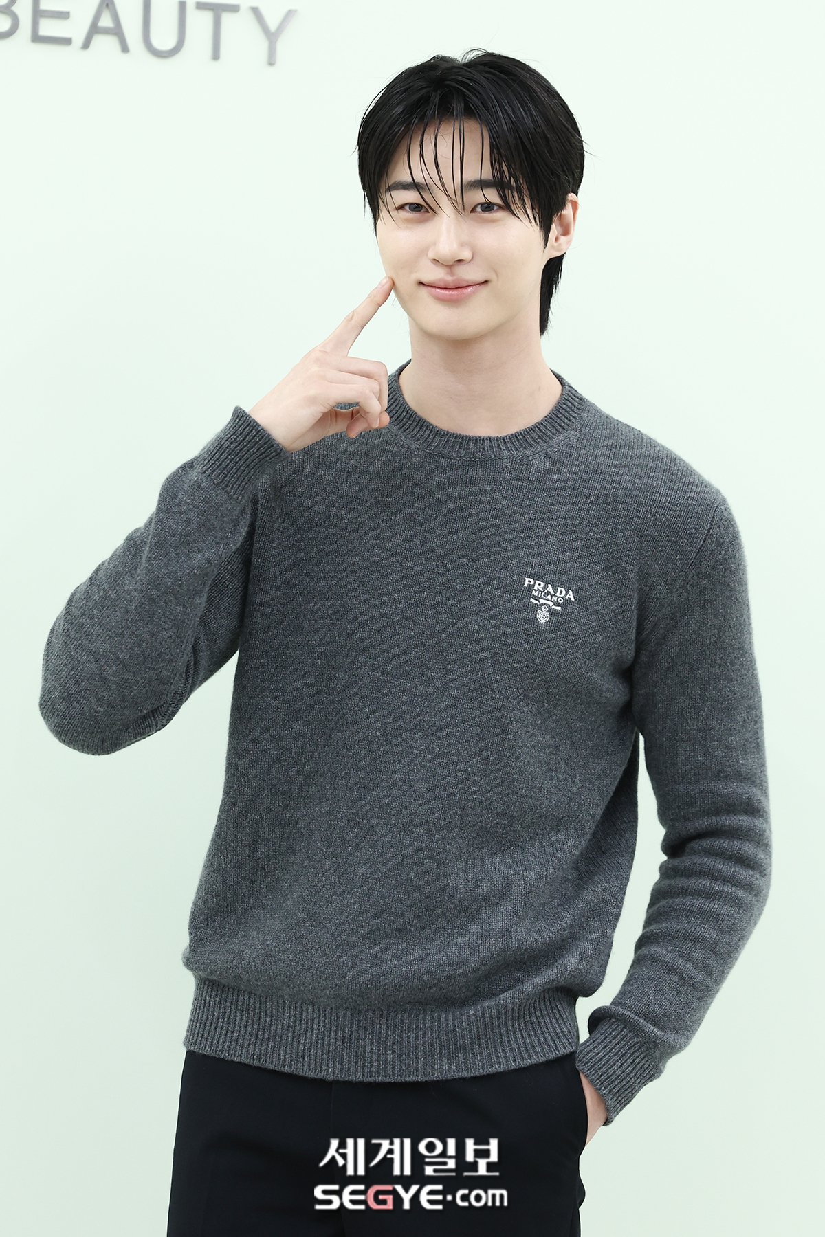 배우 변우석이 13일 서울 성동구 성수동 모처에서 열린 한 뷰티브랜드 포토콜에 참석해 포즈를 취하고 있다.