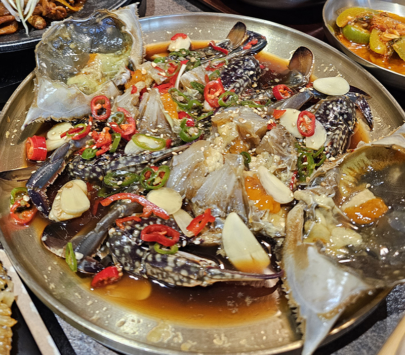 곧 음식이 테이블 가득 한 상 차려졌다. 사진에 담기지 않을 정도로 가득 차려진 한 상에 나도 모르게 감탄이 흘러나온다. 음식 하나하나에서 범상치 않은 기운이 느껴진다. 기름에 번들거리는 반찬들은 절로 식욕을 돋우는 느낌이다. 하나하나 깐 꼬막에는 가게에서 직접 만들어 판매하는 들기름이 가득 뿌려졌다. 다른 음식들의 향들을 장악하는 그 들기름의 패기는 가히 최고 아닐까 싶다. 그윽한 향을 느끼며 꼬막을 한 수저 가득 입에 넣어본다. 입안에 퍼지는 꼬막의 단맛, 들기름의 고소함이 절로 미소 짓게 한다. 빠르게 간장게장으로 눈길을 돌려본다. 게장의 달큰한 감칠맛과 녹진한 텍스처는 과식을 불러일으키는 ‘죄악’이다. 하지만 그 맛에 빠져들어 행복해하는 나를 돌아보면, 게장은 또한 죄의식을 잊게 만드는 반찬이다.