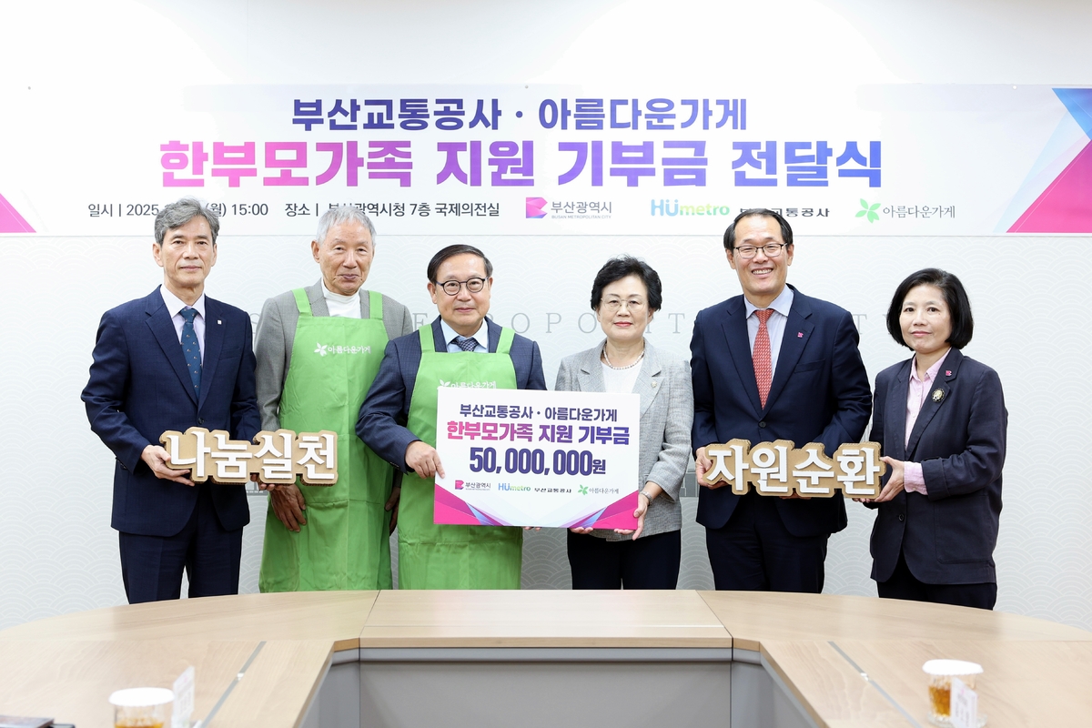 부산교통공사는 전날 부산시청 국제의전실에서 ‘저소득 한부모가족 지원을 위한 기부금 5000만원을 부산시에 전달했다고 14일 밝혔다.