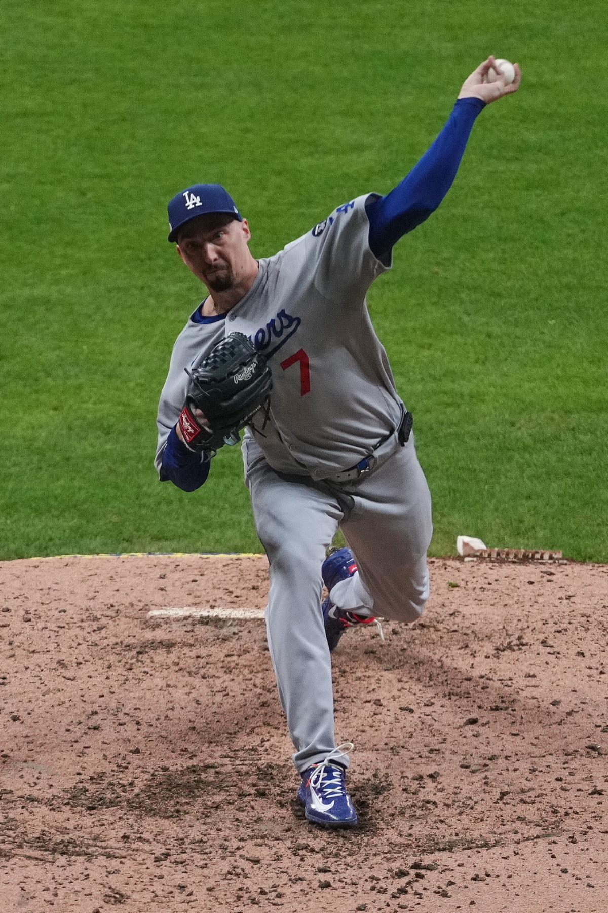 경기 막판 쫄깃한 승부가 펼쳐지긴 했지만, 이날 다저스 승리의 일등공신은 단연 선발 블레이크 스넬이었다. 지난겨울 5년 1억8200만달러라는 ‘잭팟’을 터뜨리며 다저스와 FA 계약을 맺은 스넬은 매년 겪는 통과의례처럼 부상으로 신음했지만, 시즌 막판 돌아왔고 가을야구에서는 ‘빅게임 피처’다운 면모를 유감없이 뽐내고 있다. 이날 스넬은 8이닝 동안 피안타 딱 1개만 맞으며 탈삼진 10개를 솎아내며 밀워키 타선을 꽁꽁 묶었다. 스넬에겐 세금과 같은 볼넷도 이날은 단 1개도 없었다. 스넬이 마운드에 있는 동안 밀워키 타선은 그야말로 아무것도 할 수 없었다. 3회초 칼렙 더빈에게 맞은 안타가 이날 허용한 유일한 출루였고, 더빈은 픽오프로 아웃당하면서 스넬이 있는 동안 밀워키는 딱 24타자만 타석에 섰다.