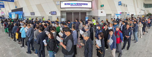 14일 경기 고양시 킨텍스에서 ‘경기도 5070 일자리박람회’가 열린 가운데 구직자들이 입장을 기다리고 있다. 경기 북부권 중장년 구직자와 기업을 직접 연결하는 취지로 열린 이날 박람회에는 기업 100여개사, 유관기관 40개사가 참여했다.