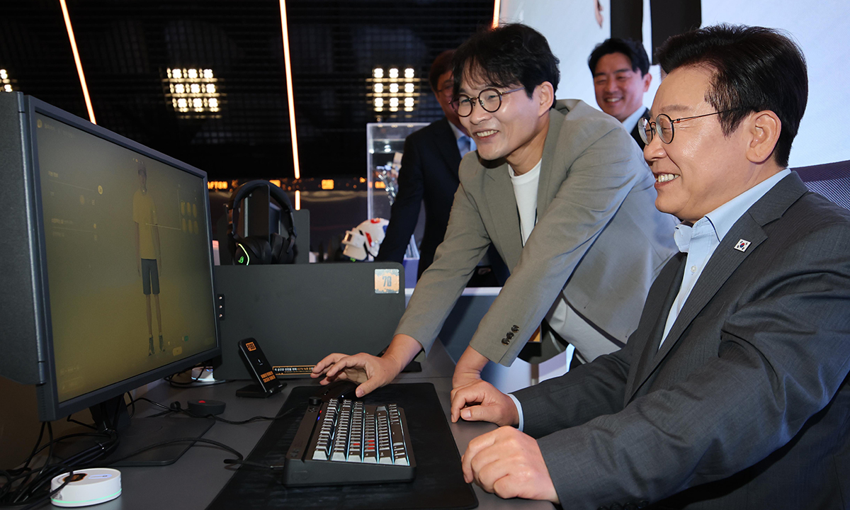 이재명 대통령이 15일 서울 성수동의 게임 복합문화공간 PUBG성수에서 K게임 현장간담회 전 크래프톤의 신작 게임인 ‘인조이’를 직접 체험해보고 있다. 대통령실사진기자단 기자페이지 바로가기 Copyright ⓒ 세계일보. 무단 전재 및 재배포 금지