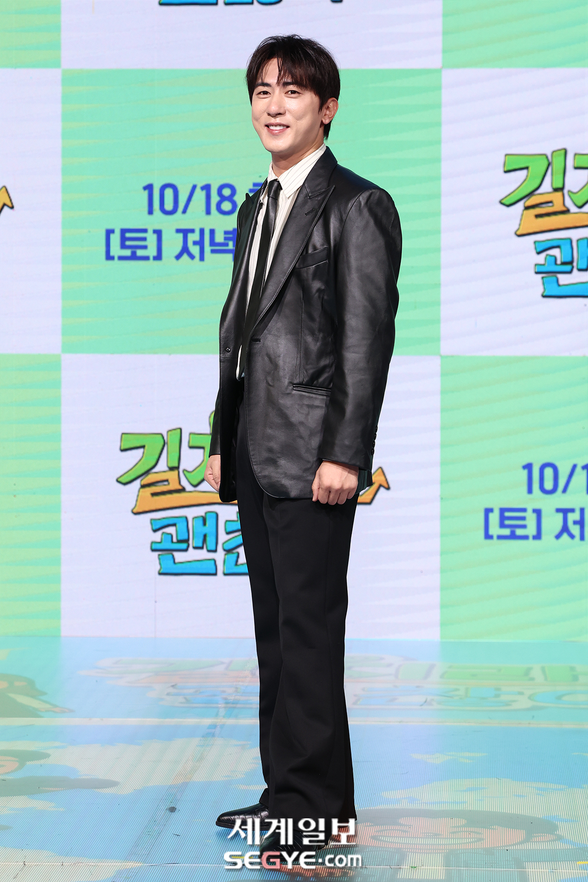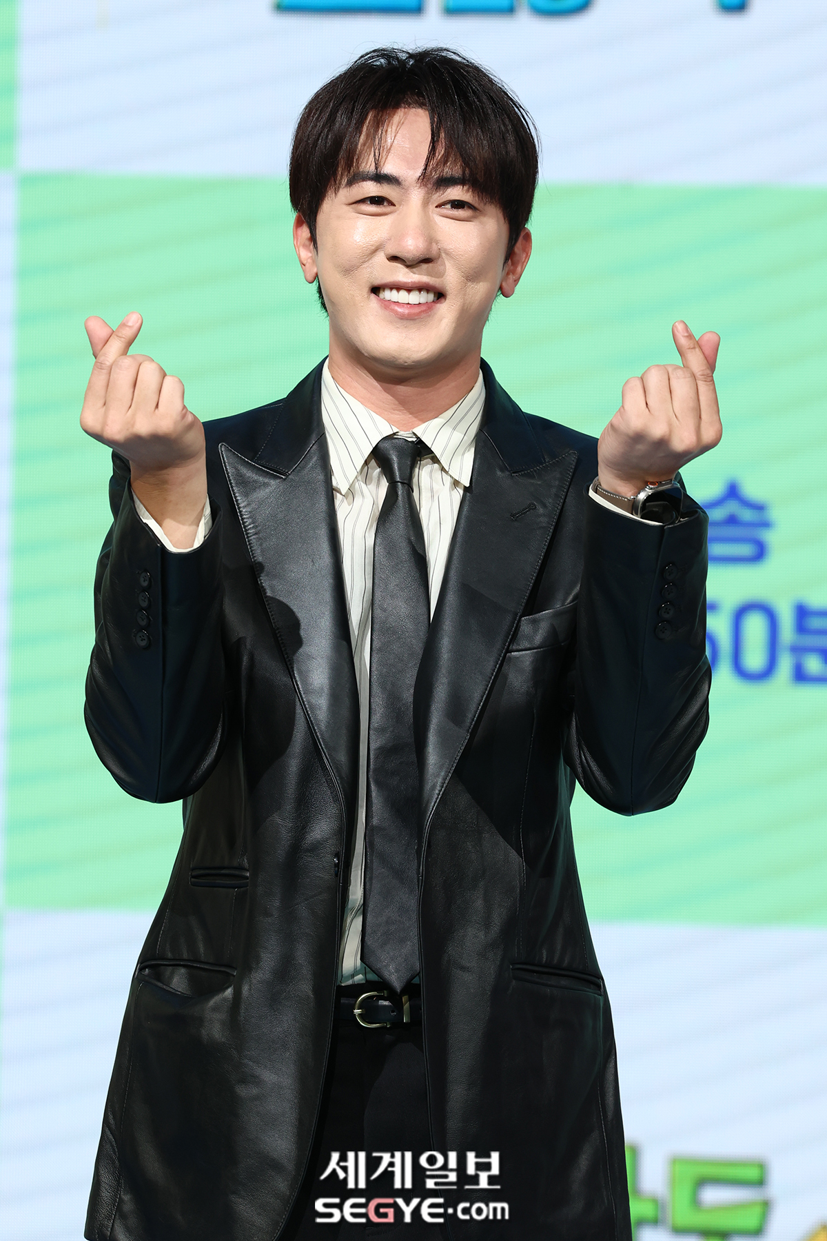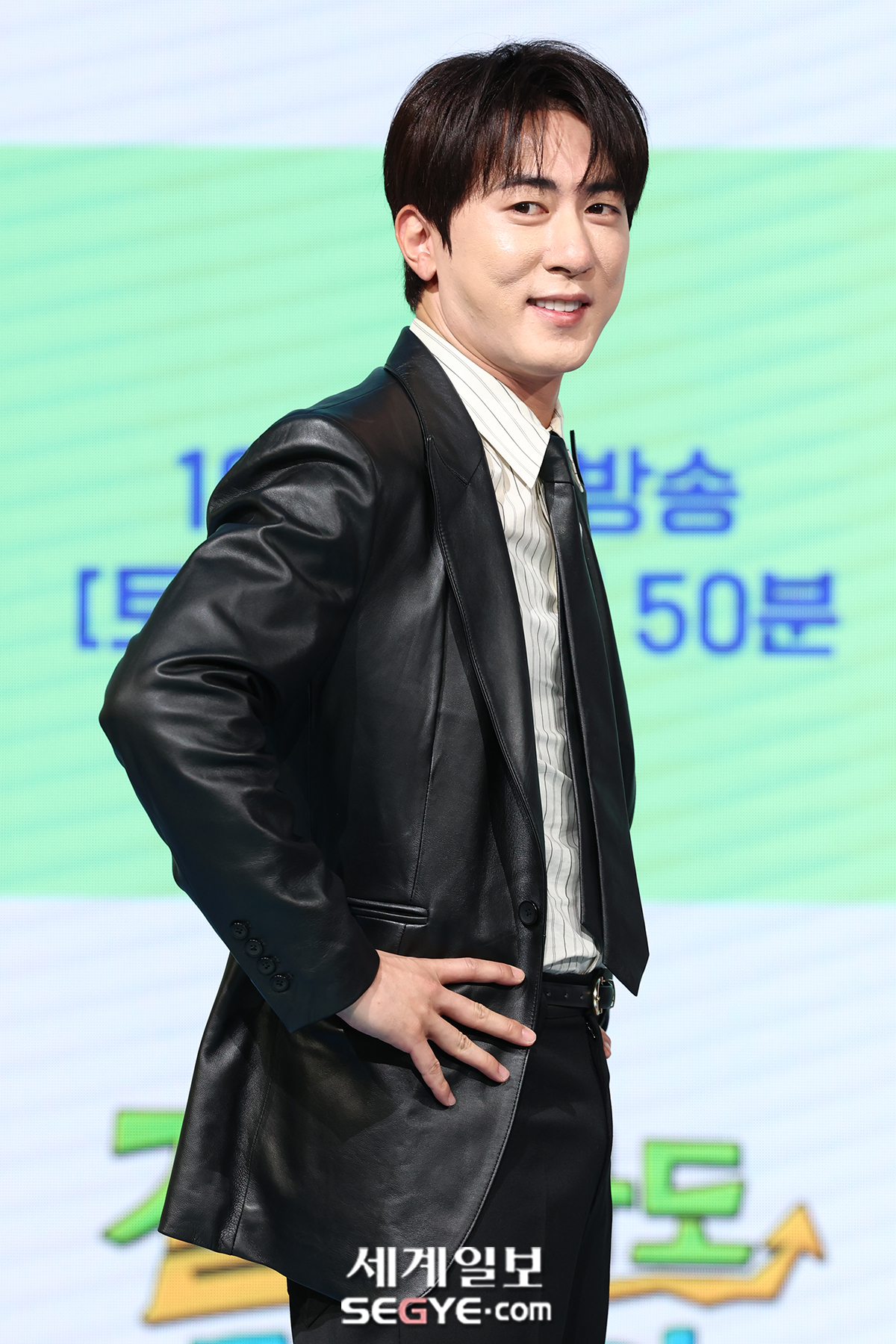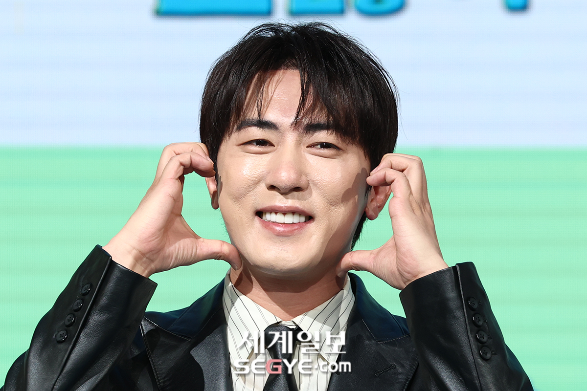 코미디언 김원훈이 16일 서울 마포구 상암동 쇼킹케이팝센터에서 열린 ENA ’길치라도 괜찮아’의 제작발표회에 참석해 포즈를 취하고 있다.
