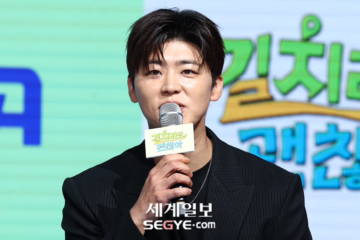가수 박지현이 16일 서울 마포구 상암동 쇼킹케이팝센터에서 열린 ENA ’길치라도 괜찮아’의 제작발표회에 참석해 인사말을 하고 있다.