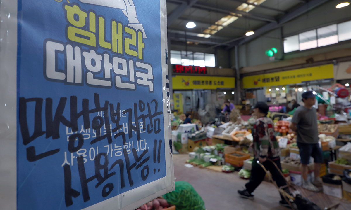 지난 14일 서울시 서대문구 인왕시장 내 매장 곳곳에 '민생회복 소비쿠폰' 사용가능매장을 알리는 안내문이 붙어 있다. 뉴스1