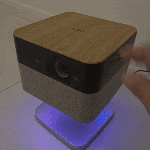 폼팩터(기기 형태)에서도 편의성을 대폭 높였다. 기본 장착된 스탠드를 사용해 프로젝터 헤드를 수직으로 끝까지 들어 올리면 천장에 정면으로 화면을 투사할 수 있었다. 스탠드를 손잡이로 활용해 한 손으로 들고 다닐 수 있고, 전원선 없이 보조배터리만으로도 켤 수 있어 캠핑장 등 야외에서 사용하기 편했다.