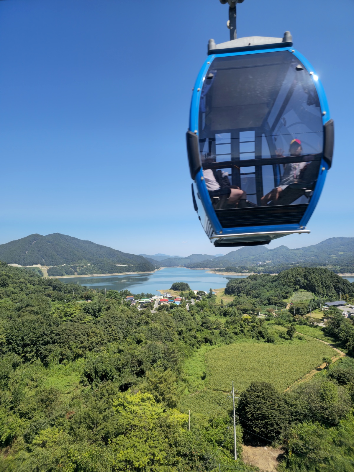청풍호 가운데 우뚝 솟은 비봉산에 오르면 산과 물이 어우러지는 청풍호 풍경을 제대로 만날 수 있다. 비봉산 정상까지 2.3km 구간을 운행하는 청풍호반 케이블카를 타면 된다. 청풍면 물태리 정류장에서 출발한 케이블카가 순식간에 고도를 높이자 발아래 펼쳐지는 절경에 탄성이 터진다. 약 10분을 날아 정상 정류장에 도착하니 오늘따라 날이 아주 맑아 시력이 갑자기 좋아진 것처럼 먼 산까지 또렷하다. 제천 시내 동쪽으로 금월봉, 작성산, 신선봉, 청풍대교, 소백산, 옥순대교가 파노라마로 펼쳐지고 서쪽으로는 저 멀리 용두산, 대덕산, 감악산이 손에 잡힐 듯 가깝다. 고개를 뒤로 돌리면 모멘트 캡슐 전망대 너머 충주시 쪽으로 월악산, 악어섬, 참실리 마을이 어우러져 그림 같은 풍경을 선사한다. 해발 531m 비봉산은 봉황새가 알을 품고 있다가 먹이를 구하려고 비상하는 모습과 닮아 이런 이름을 얻었다. 비봉산 정상에 서면 사방이 짙푸른 청풍호로 둘러싸여 마치 넓은 바다 한가운데 섬에 오른 기분이다.