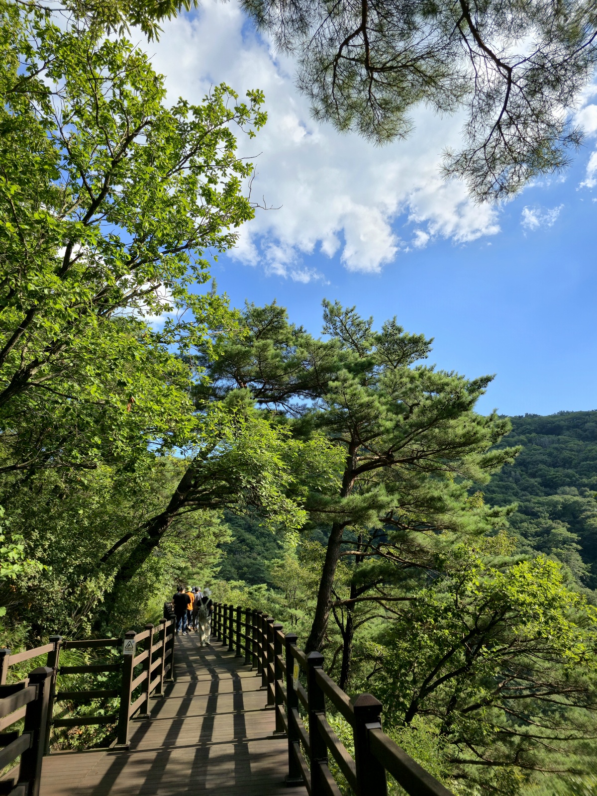 정방사에서 다시 동쪽으로 20분을 차로 달리면 깊은 숲의 향기가 진정한 힐링을 선사하는 국립 제천치유의숲이 기다린다. 몸과 마음이 지친 이들에게 이곳은 어머니 품처럼 편안한 안식처를 제공한다. 산세가 수려하고 기암절벽이 절경을 이룬 금수산 자락에 있어 음이온 가득한 피톤치드로 샤워하며 온전히 나를 마주하는 시간을 만들 수 있다. 건강치유숲길(0.4㎞·15분), 음이온치유숲길(0.6㎞·10분), 숲내음치유숲길(0.5㎞·20분), 자작나무숲길(0.2㎞·5분) 등 다양한 산책로가 마련돼 천천히 명상하며 자연과 호흡하기 좋다. 건강치유숲길을 걷는다. 데크길이 편안하게 놓여 노약자, 휠체어 이용자도 편하게 산책할 수 있다. 눈을 감고 숨을 깊게 들이마시자 건강한 자연이 폐속 깊숙한 곳까지 전달되며 묵직하던 머리를 금세 맑게 만들어 준다. 음이온치유숲길은 계곡 주변부에 조성된 숲길로 다량의 음이온이 방출되는 쉼터에서 명상을 즐길 수 있다. 퇴계 이황 선생의 건강 비법인 ‘활인삼방 숲테라피’와 몸에 좋은 ‘사상체질 차테라피’ 등 건강과 힐링 프로그램도 마련돼 있다.