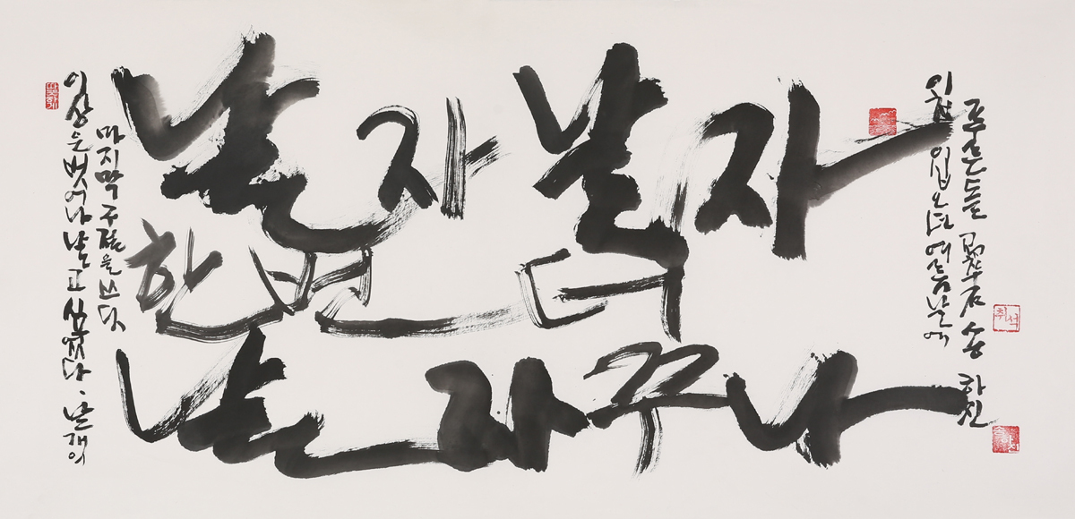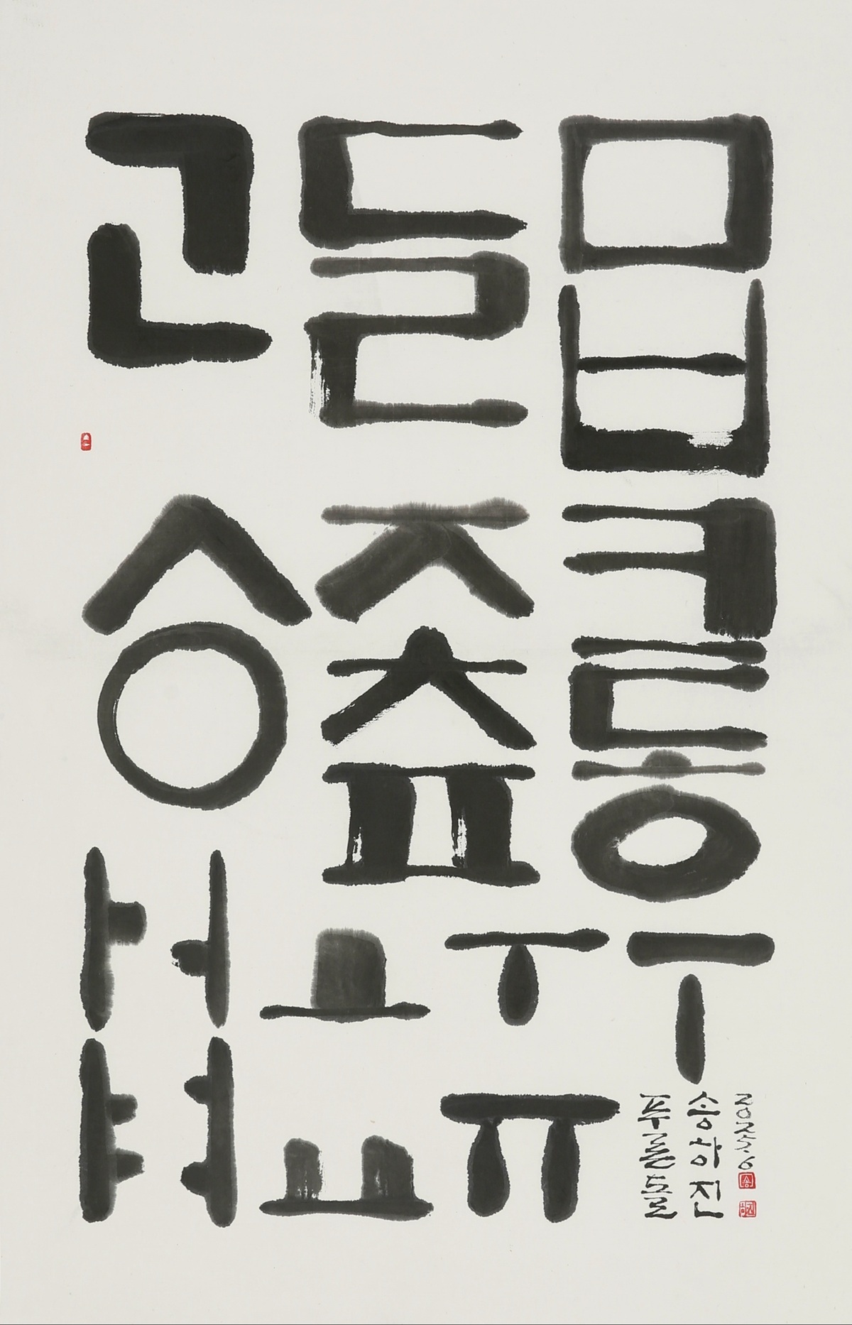 정부 지정 ‘한글문화도시 세종’의 실현을 위한 특별 기획전으로 한국 서예의 주인은 한글이 되어야 한다. 어순대로 왼쪽에서 오른쪽으로 쓰는 가로쓰기 서예여야 한다. 과거에 지나치게 얽매이지 않고 ‘거침없이 쓰는 서예’여야 한다. 세종특별자치시(시장 최민호)가 이러한 논리로 한글의 멋을 담은 조형 서예로 서예계의 변혁을 추구해온 푸른돌(翠石) 송하진 서예가 초대전을 마련한다. 세종시 박연문화관 전시관에서 22일 개막해 다음 달 2일까지 계속되는데, 송하진 서예가의 한글의 멋을 담은 K-서예의 정수를 보여주는 작품 60여점이 전시된다.