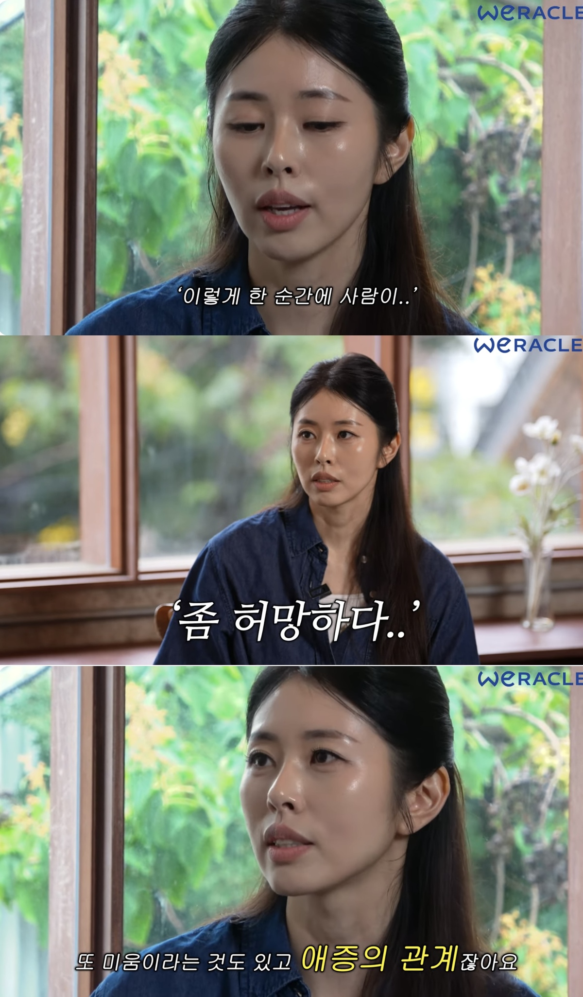 이어 “그때 마음은 ‘좀 허망하다’였다. 이렇게 한순간에 사람이 사라질 수 있는 거구나. 그런데 그전까지 아빠와 나는 사이가 좋지 않았고 애증의 관계였다. 갑자기 그 상대방이 사라져버리니까 이 감정들이 오갈 데를 잃는 거다. 미워, 싫어, 야속해, 서운해, 섭섭해 같은 감정을 쏟아낼 대상이 없어져서 허망하더라”고 덧붙였다.