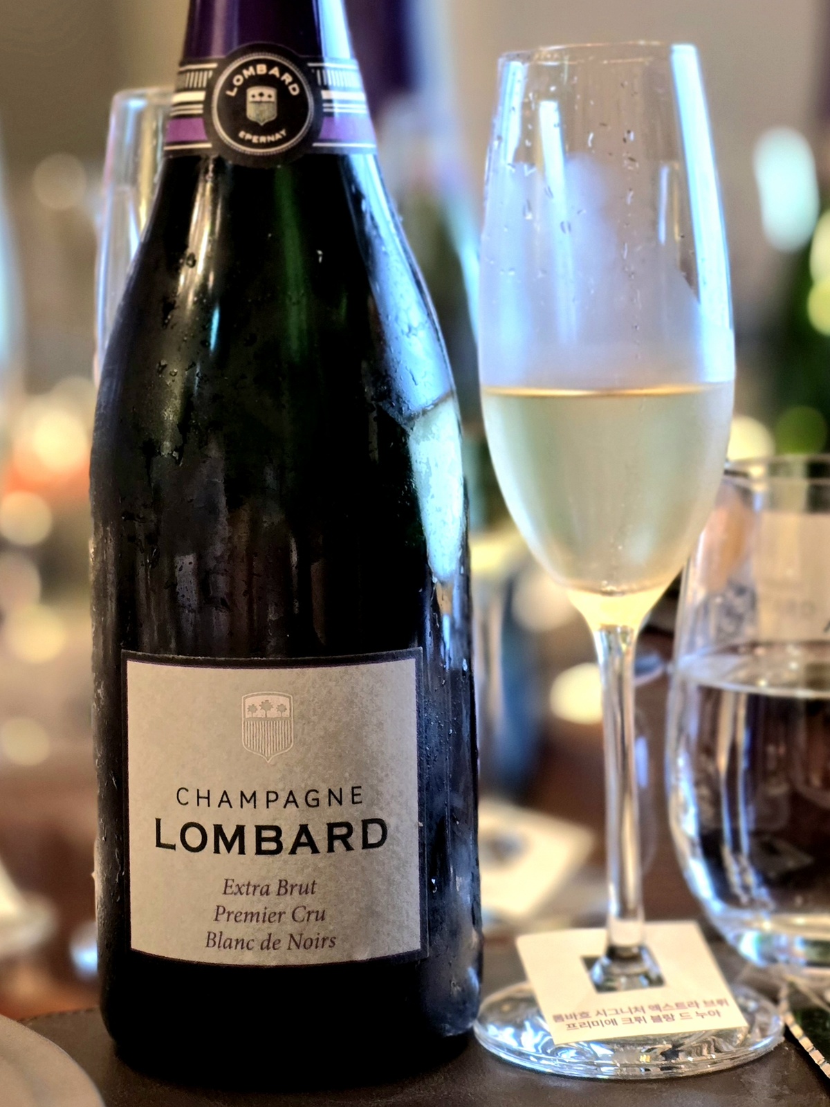롬바흐 시그니처 엑스트라 브뤼 프리미에 크뤼 블랑 드 누아(Lombard Signature Extra Brut 1er Cru Blanc de Noir)는 피노누아 50%(Chigny-les-Roses, Cumières), 피노뮈니에 50%(Coulommes-la-Montagne, Sermiers)이며 도사주는 4g/L입니다. 흰복숭아, 사과꽃 향으로 시작해 온도가 오르면서 오랜 효모앙금 숙성에 얻는 견과류, 바닐라, 토스티한향이 피어납니다. 기분 좋은 과일향과 우아한 산미가 완벽한 균형을 이루며 복합미가 뛰어납니다. 스틸 탱크에서 발효하고 60%는 스틸 숙성, 40% 오크 숙성해 블렌딩한 뒤 최소 36개월동안 병숙성합니다. 모래와 점토가 섞인 사질 양토와 석회질 토양에서 자란 피노누아는 와인에 분필 같은 미네랄 풍미를 선사합니다. 또 오크 숙성 과정에서 얻는 미세 산화를 통해 은은한 토스트향이 한층 잘 드러납니다.