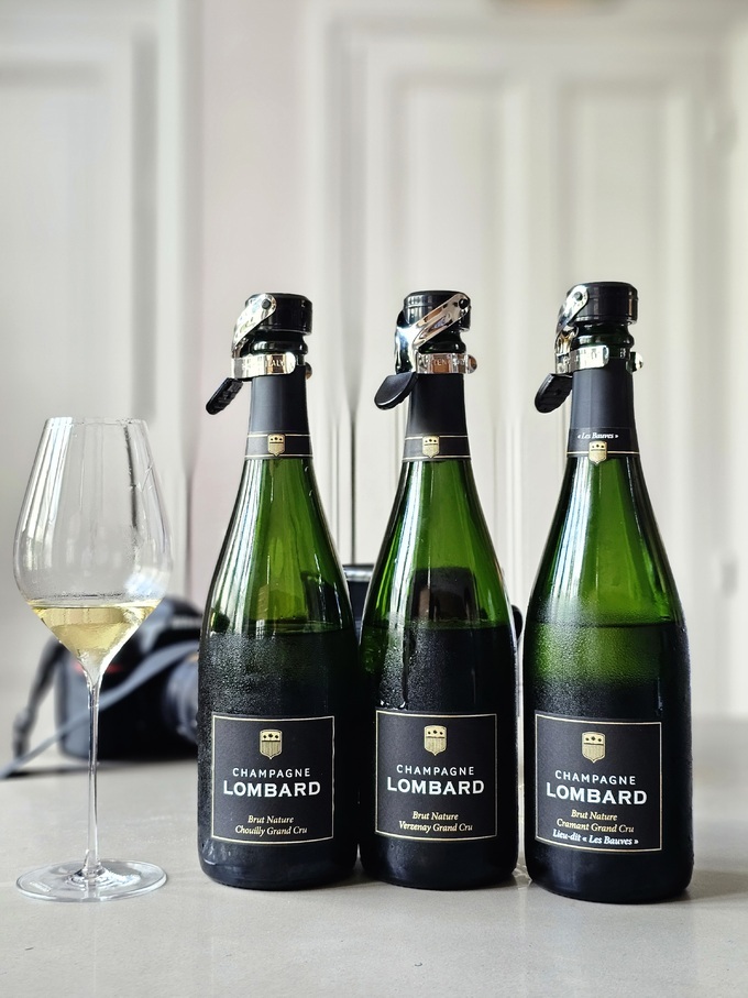 롬바흐 시그니처 브뤼 나뛰르 그랑크뤼(Lombard Signature Brut Nature Grand Cru)는 피노누아 50%(Ambonnay, Verzenay), 샤르도네 50%(Le Mesnil-sur-Oger, Chouilly, Avize, Cramant)이며 도사주는 0g/L입니다. 라임, 사과, 흰복숭아향으로 시작해 잔을 흔들면 신선한 아몬드와 토스트가 따라 옵니다. 부드러운 버블이 혀를 어루만지며 풍부한 바디감와 완벽한 밸런스가 느껴집니다. 여운은 길게 이어집니다. 무엇보다 떼루아의 특징을 아주 잘 결합한 샴페인입니다. 빼어난 샤르도네 생산지 꼬뜨 데 블랑(Cote des Blancs)의 백악질 토양은 미네랄, 섬세함, 날카로움을 선사하고 최고의 피노누아 생산지 몽타뉴 드 랭스(Montage de Reims)의 점토와 석회질 토양은 풍만한 볼륨감을 잘 표현합니다. 오크통 숙성을 통한 부드러운 산화를 통해 떼루아의 미묘한 풍미를 잘 드러냅니다. 스틸 탱크에서 발효한 뒤 여과를 하지 않고 75%는 스틸, 25%는 오크통에서 6~8개월 숙성한 뒤 블렌딩해 2차 병숙성 합니다.