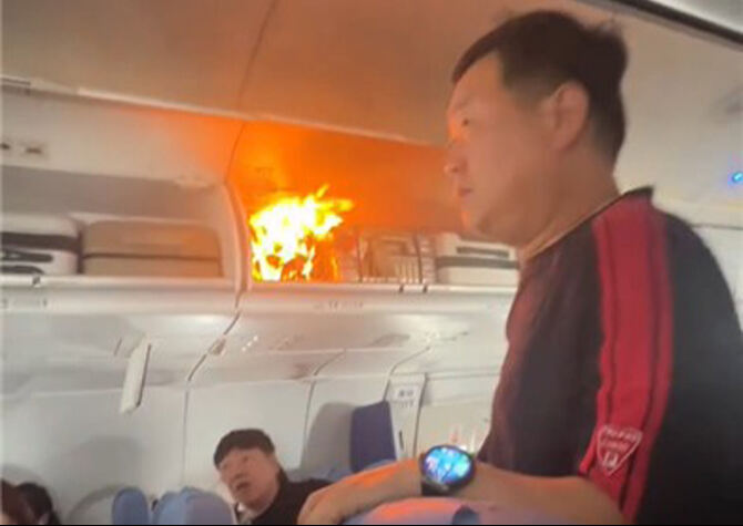 소셜미디어에 유포된 영상에는 기내 수하물 선반에 불이 붙자 승객들이 비명을 지르는 가운데 승무원들이 대응하는 모습이 담겼다. 탑승객이라 주장하는 네티즌은 "펑 하는 소리와 함께 불길이 뿜어져 나왔다"고 전하기도 했다.