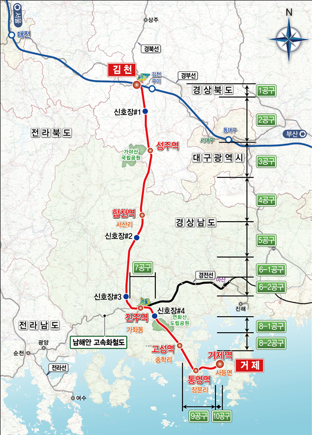 현재 1~9공구는 실시설계가 마무리 단계이며, 마지막 10공구인 거제 구간은 지난 6월 기본설계를 완료한 상태다.