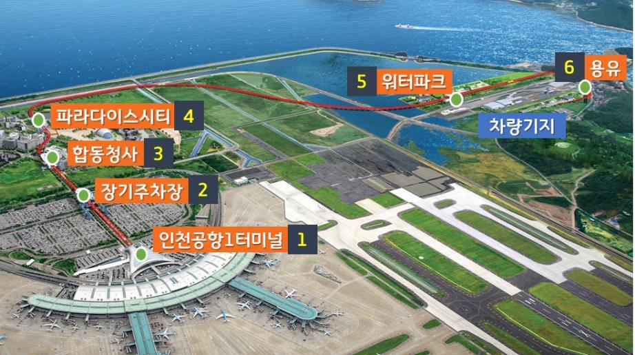 인천공항 자기부상열차는 인천공항 제1여객터미널역에서 용유역까지 6개 역, 총 6.1㎞ 구간을 운행한다. 기존 대중교통수단에서 관광·체험열차로 변경돼 시속 40㎞ 이하로 주행한다.