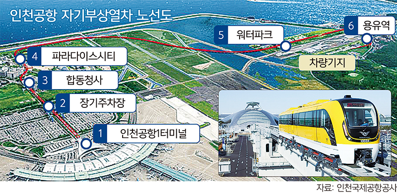 인천공항 자기부상열차는 인천공항 제1여객터미널역에서 용유역까지 6개 역, 총 6.1㎞ 구간을 운행한다. 기존 대중교통수단에서 관광·체험열차로 변경돼 시속 40㎞ 이하로 주행한다.