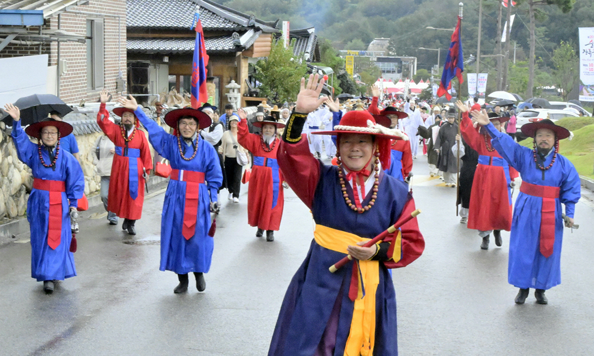 19일 전북 순창군 순창전통고추장민속마을에서 열린 제20회 순창장류축제에서 최영일 순창군수(가운데) 등이 순창고추장 임금님 진상 행렬을 재현하고 있다. 순창군의 전통 장류 문화를 전국에 알리고 지역 경제 활성화를 도모하기 위한 순창장류축제는 지난 17일부터 이날까지 사흘간 열렸다.