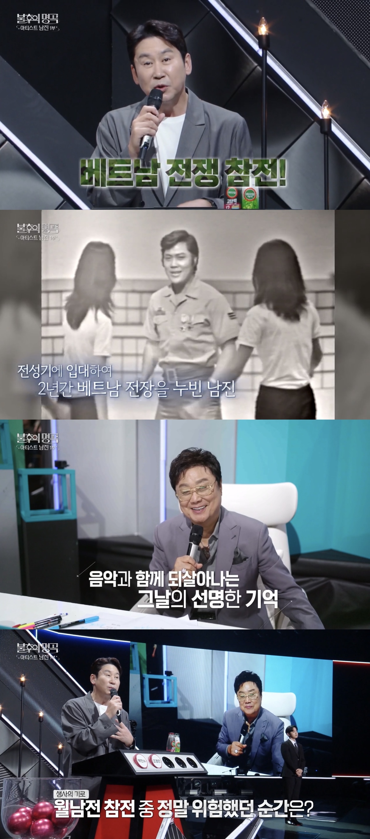 방송에서는 남진의 베트남전 파병과 관련된 다양한 일화도 소개됐다. 그는 해병대 연예대로 복무하며 1969년 7월 호이안에서 소총수로 근무했고, 환송식에서 자신의 히트곡 '가슴 아프게'를 직접 부르며 큰 화제를 모았다.