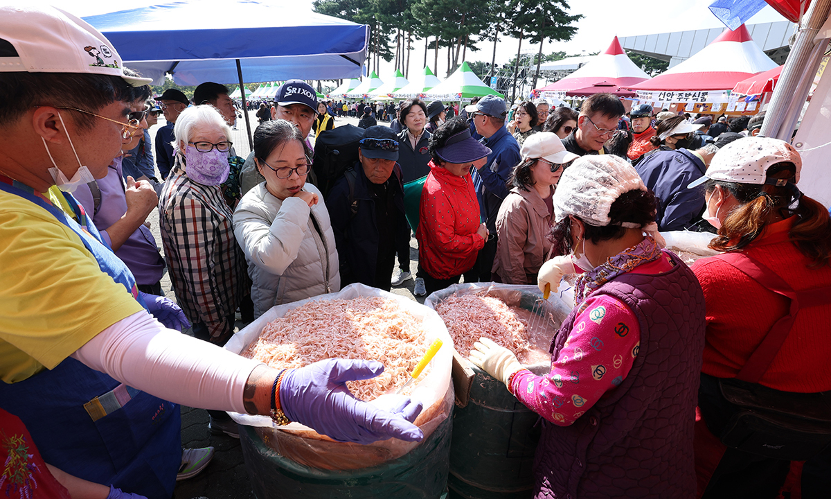 ‘제18회 마포나루 새우젓축제’ 마지막 날인 19일 서울 마포구 월드컵공원 평화의광장 새우젓축제 행사장에서 시민들이 강경, 광천, 보령, 소래, 신안, 부안 등에서 올라온 새우젓을 맛보고 있다. 올해 마포나루 새우젓축제는 전통을 담고, 사람을 잇고, 지역을 살리는 축제라는 의미의 ‘마포 품다, 새우 담다, 축제 잇다’라는 슬로건으로 17∼19일 진행됐다.