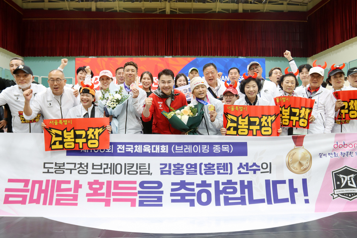 도봉구는 지난 17일 부산에서 열린 전국체전 브레이킹 남자 일반부 경기에서 구 브레이킹팀 소속 김홍열 선수가 금메달, 오철제 선수는 동메달을 받았다고 20일 밝혔다. 브레이킹은 힙합 음악에 맞춰 춤 대결을 펼치는 스트리트 댄스의 일종이다.